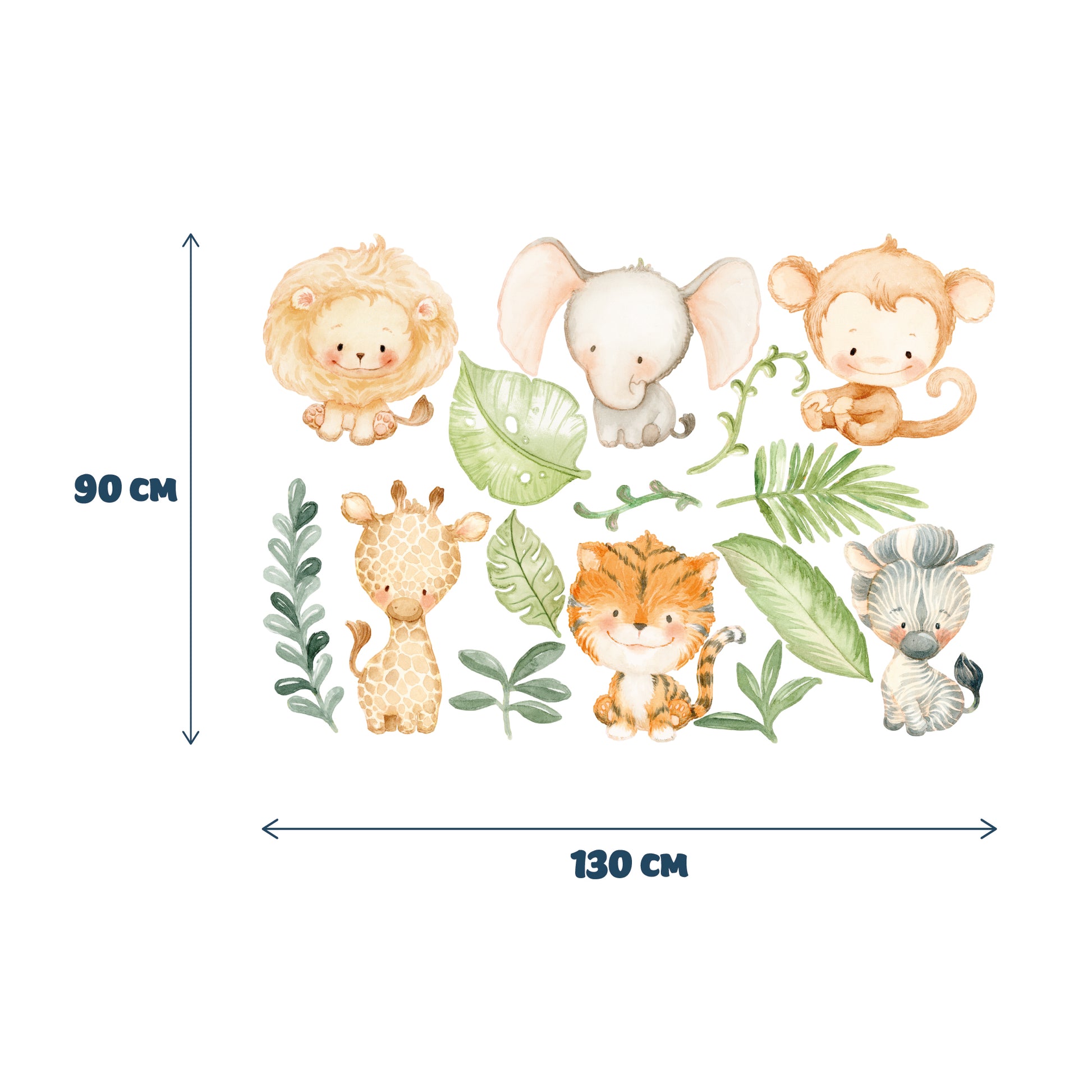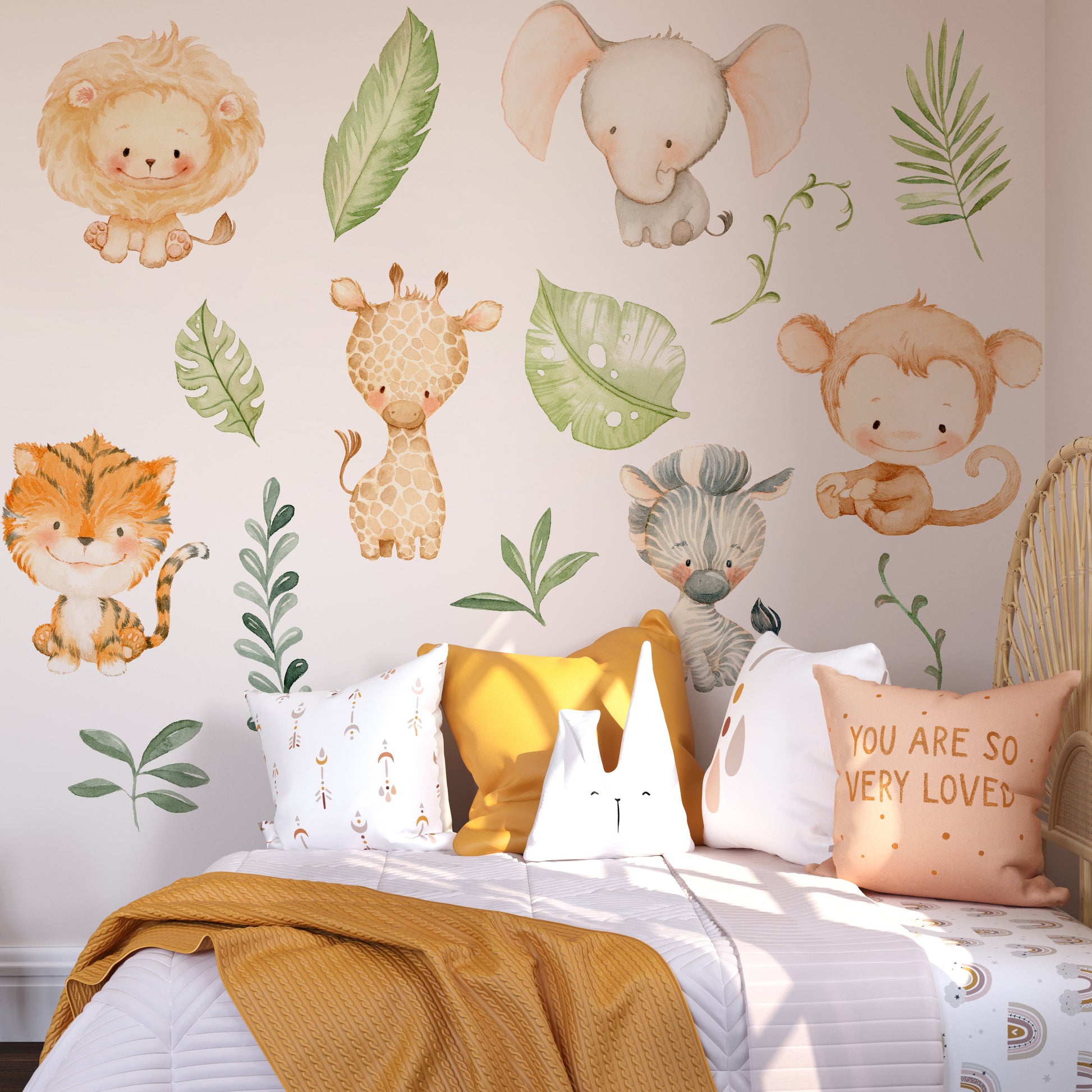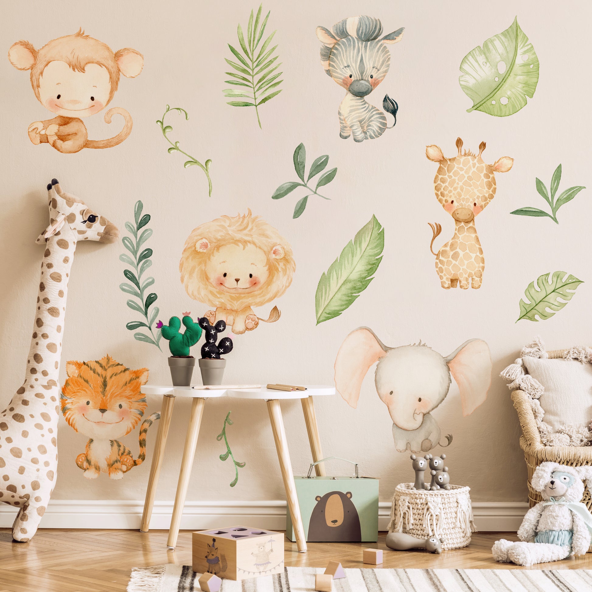 Baby Jungle Animals and Leaves Nursery Wall Sticker Pack